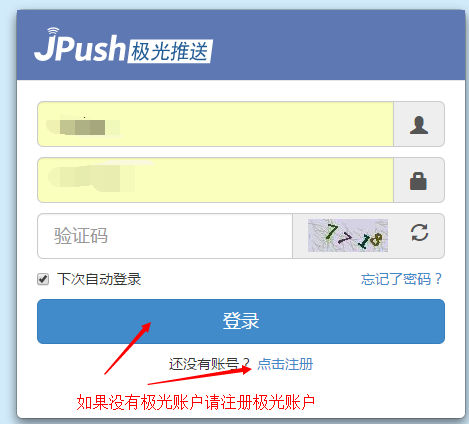 第一步:登录或注册一个极光账户